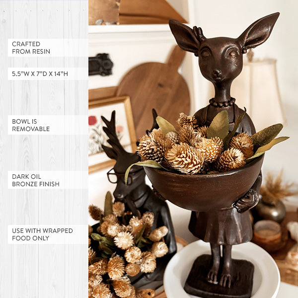 Give your Christmas decor a dash of elegance and a sprinkle of whimsy with our Bronze Girl Reindeer Bowl! Whether it's holding your favorite trinkets, candies, or simply shining on its own, this charming bowl is bound to steal the spotlight. This is the best possible price, so don’t miss out because it will sell out fast!