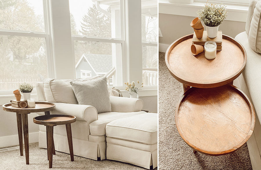 Stealers, we are SO excited to bring you this GORGEOUS set of TWO accent tables! These beauties are just what your home is missing, and we know they’ll go with ANY décor style in your home! This set of two beautiful tables is just dripping with SO much character! We love the idea of these next to your couch to place your drinks or snacks while you are watching tv. Add these to your entryway to organize your mail, keys, wallets, and daily reminders! We can see these styled in your bedroom, office, craft room, dining room, or even your bathroom. Add your lotions, candles, and rolled hand towels to them! The possibilities are truly ENDLESS with these INCREDIBLE beauties! With shipping just $5 for this set, they are sure to sell out fast! Steal yours before it's too late! PS - Check out how our friend @boxwoodfarmsllc used hers in the pics above!