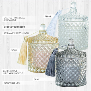 Introducing our delightful Candle Jar with Tassel – the perfect addition to your cozy space! Choose from three gorgeous colors – clear, ivory, or gray-blue – to match your style and mood.