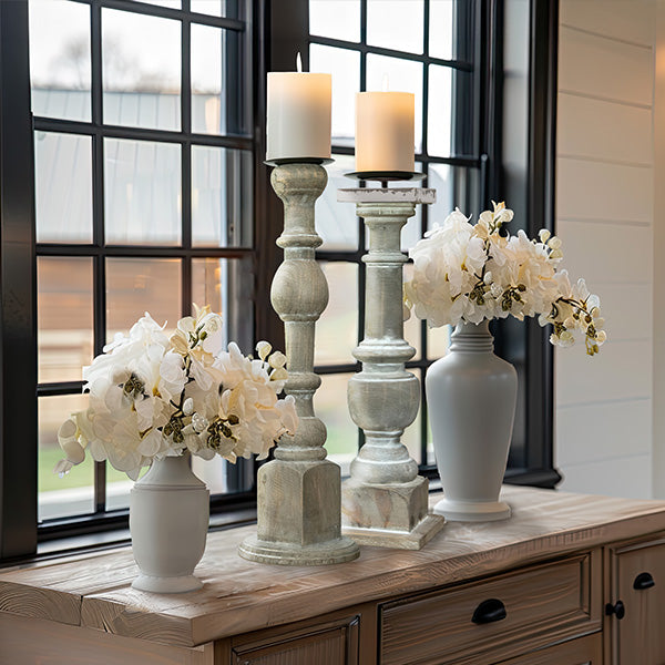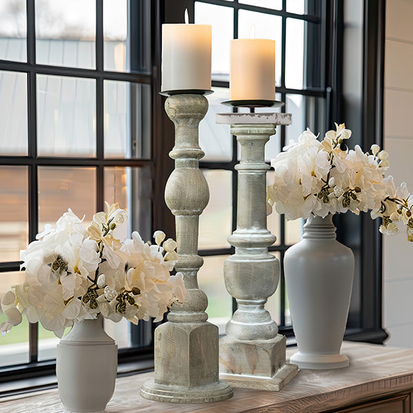 Elevate your home decor with the understated beauty of our Tall Wood Candle Stick Holder with Metal Pedestal. Whether adorning your dining table, mantlepiece, or coffee table, this exquisite piece will surely become a cherished accent in your home, bringing both style and functionality to any setting. Experience the enchantment of candlelight in its purest form with this stunning candlestick holder.