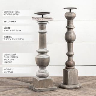 Medium: 5.5"W x 5.5"D x 19"H - Packed: One Set Per Package (you will receive two Candle Sticks)