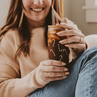 Embrace the festive spirit with our Candy Cane can glass tumbler! Featuring a playful candy cane pattern wrapped around, this tumbler is perfect for enjoying iced holiday drinks. Whether you're sipping on iced coffee, holiday punch, or a refreshing seasonal cocktail, this charming tumbler adds a touch of holiday cheer to every sip. Durable and stylish, it makes a wonderful gift or stocking stuffer for friends and family.