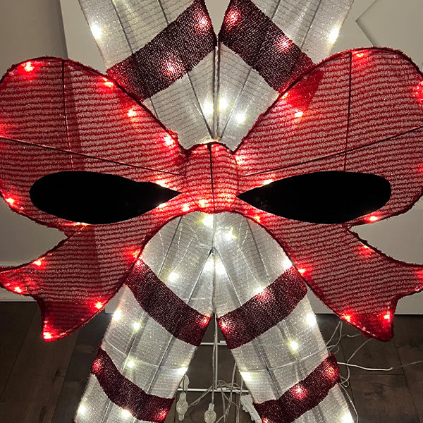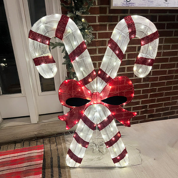 At 46 inches tall and 38 inches wide, this isn't some dainty pathway marker. This is a full-on focal point that transforms your porch into a winter wonderland entrance. The crossed candy cane design creates natural symmetry and visual drama, while that oversized red glitter bow ties it all together—literally. It's the kind of piece that photographs beautifully and makes your home the house everyone slows down to admire.