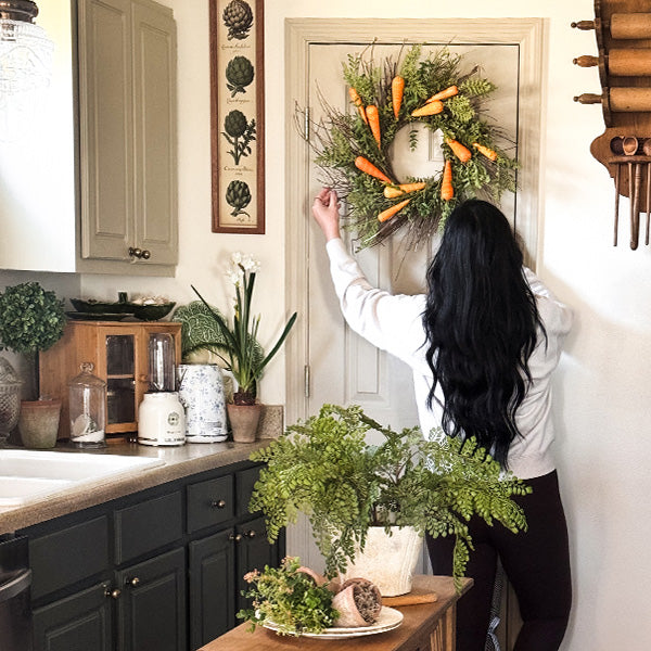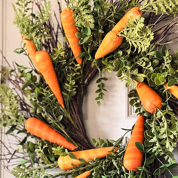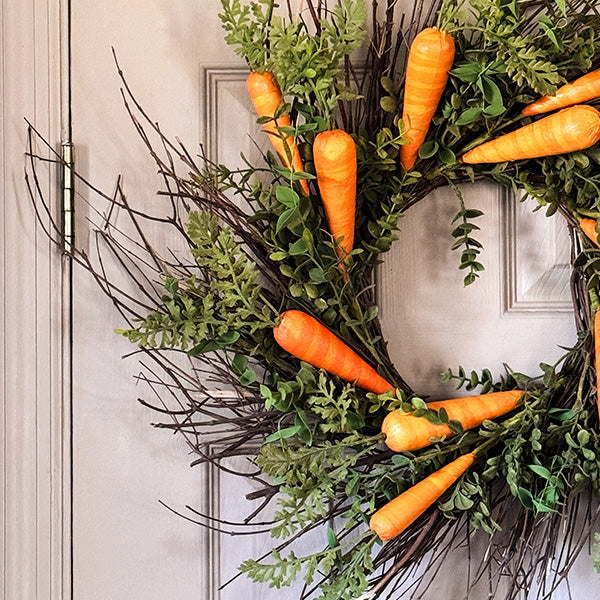 Celebrate Easter in style with this Faux Carrot and Foliage Wreath—a delightful and effortless way to welcome the season!