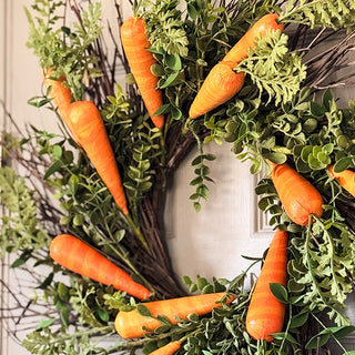 Welcome spring with the Faux Carrot and Foliage Easter Wreath, a whimsical yet elegant touch to your seasonal decor! Designed to bring fresh, festive vibes without the upkeep of real greenery, this beautifully crafted wreath is a standout piece for Easter and beyond.