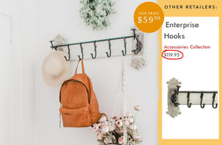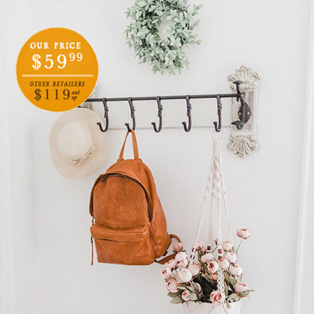 Add a bit of fancy to your space by using this wall hook to create a catch-all for any backpacks, hats, keys, scarves and leashes in the mudroom OR use it in the kitchen to hold recipe rings and dried herbs. You could even use them in the bathroom to hang towels and robes! SIGH! The possibilities are endless and this incredible piece won’t go unnoticed!