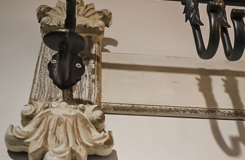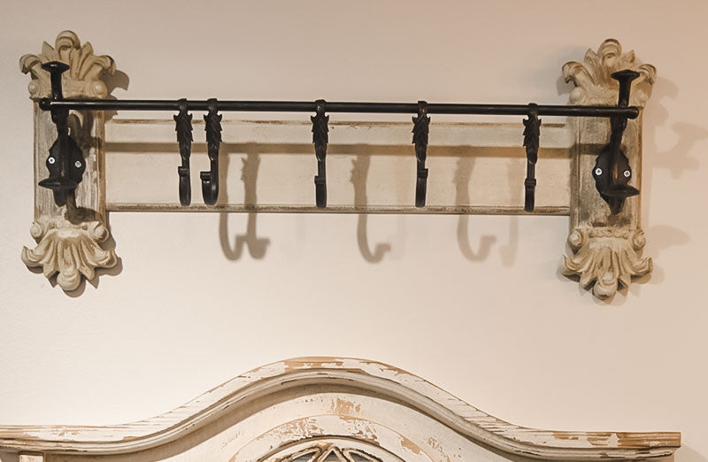 - Beautifully crafted from intricately carved wood with metal hooks