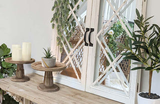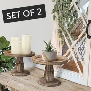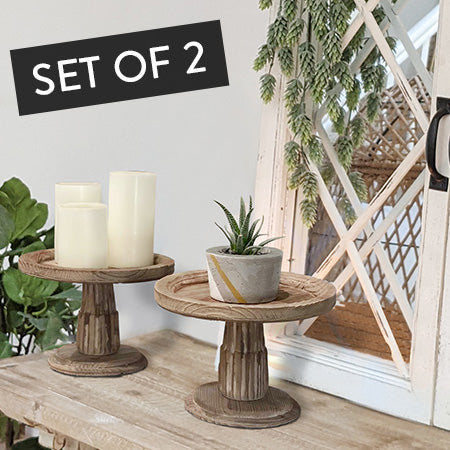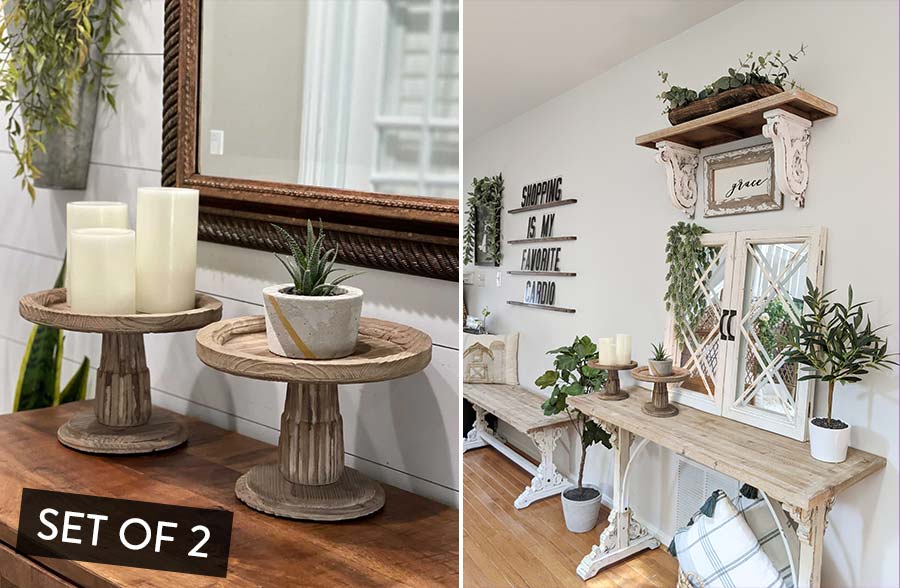 We have outdone ourselves with today's steal! This set of 2 wooden pedestal risers truly captured our hearts! We are HUGE fans of natural tones because they can fit with any decor style! These are a vintage farmhouse enthusiast's dream... sigh... They just have that romantic feel that we can't resist!