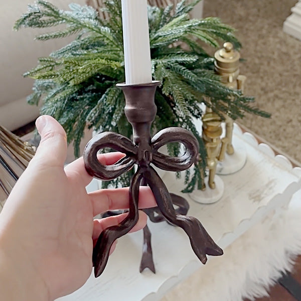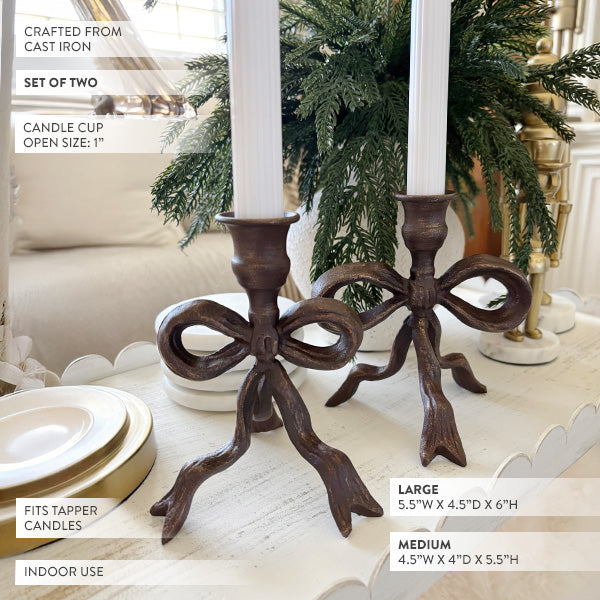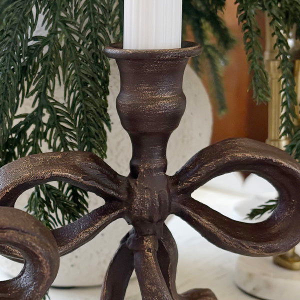 Crafted from solid cast iron (yep, the real deal — no hollow fakes here), each holder shows off an antique bronze finish that looks like it’s lived a few beautiful decades already. The bow detail isn’t cutesy — it’s sculptural, dimensional, artful. The kind of texture that makes guests lean in for a closer look.