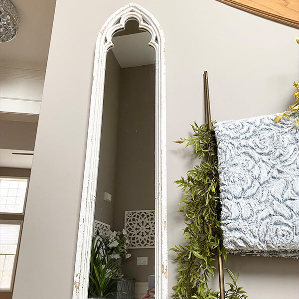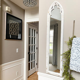 Place this 47 Inch Cathedral Arched Mirror anywhere needing extra shabby chic charm. Which let's be honest....that’s EVERYWHERE LOL! Place one in your bathroom, bedroom, entryway, above your mantel space, in your dining room, and basically anywhere!