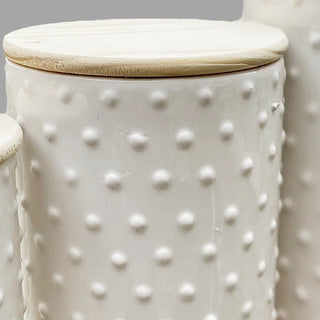 Introducing our White Hobnail Ceramic Canister Set with Lids – where affordability meets functionality, and style reigns supreme!