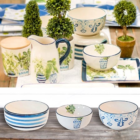 Offering a fresh stylish look our Topiary Bowl Set features a classic blue and white color palette fit to compliment most spaces. Crafted of ceramic the simple shape and attractive design of this set of three bowls will make an eye-catching addition to your farmhouse kitchen or dining room.