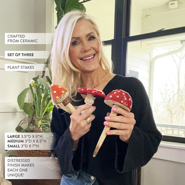 It’s all about the little things that bring us happiness—like the simple joy of spotting a tiny mushroom nestled in your favorite houseplant. Bring a touch of woodland wonder to your summer decor with the Enchanting Ceramic Mushroom Plant Stakes – Set of Three. Whether you're dressing up a succulent on the windowsill or adding charm to your indoor palm, these delightful toadstools are sure to spark smiles and compliments alike.