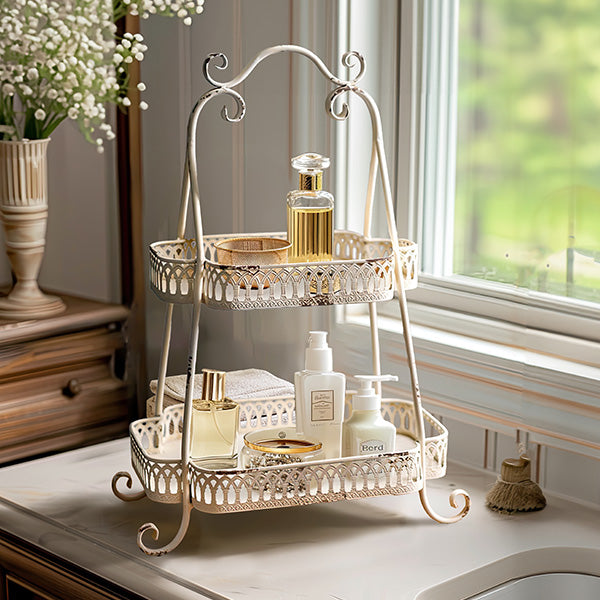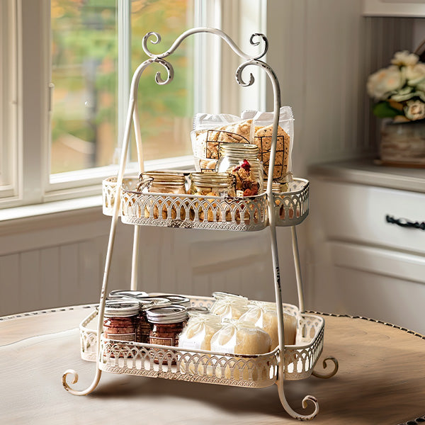 Introducing our Two-Tier Chantilly Tray – an elegant and functional addition to your serving essentials. Crafted with sophistication, this two-tier tray features a Chantilly-inspired design, adding a touch of timeless charm to your table. Perfect for presenting plated desserts, appetizers, or trinkets, the Two-Tier Chantilly Tray elevates your entertaining experience with grace and style. Enhance your tabletop presentation with this versatile and beautifully designed tray, ideal for gatherings and special occasions.