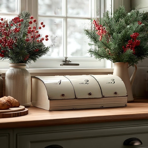 If your heart does a happy dance every time you see that perfectly distressed, authentically worn enamel finish… oh friend, this Chippy Enamel Three-Door Storage Bin is about to sweep you clean off your feet. She’s got presence. She’s got charm. She’s got three adorable lidded cubbies ready to stash, display, and steal the whole kitchen show.