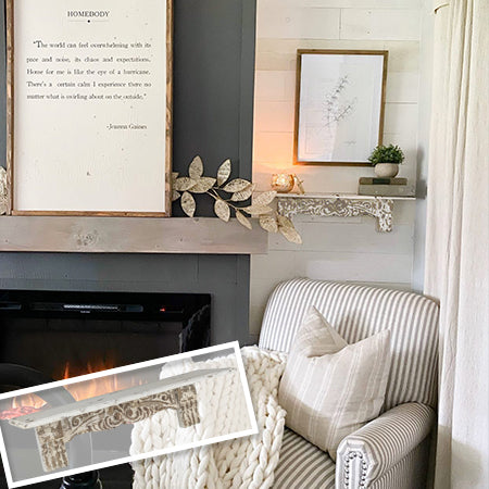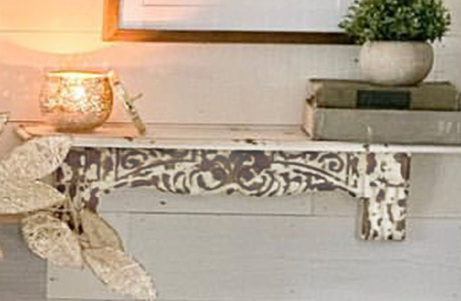 Around here, we believe that your home should be full of elements that reflect your personality and truly speak from your heart. This beautiful chippy wall shelf is just dripping with character as beautiful and unique as you are. The French-inspired elements are just so eye-catching and make them a breeze to decorate.