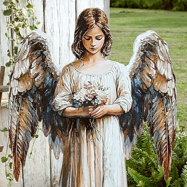 Grace your home with peace, beauty, and heavenly charm with our Indoor/Outdoor Life-Sized Christmas Angel Cutout—a breathtaking decorative piece that brings warmth and serenity to any holiday setting. Standing tall with intricately detailed wings and a soft, glowing presence, this angel holds a delicate bouquet and radiates the timeless spirit of Christmas.
