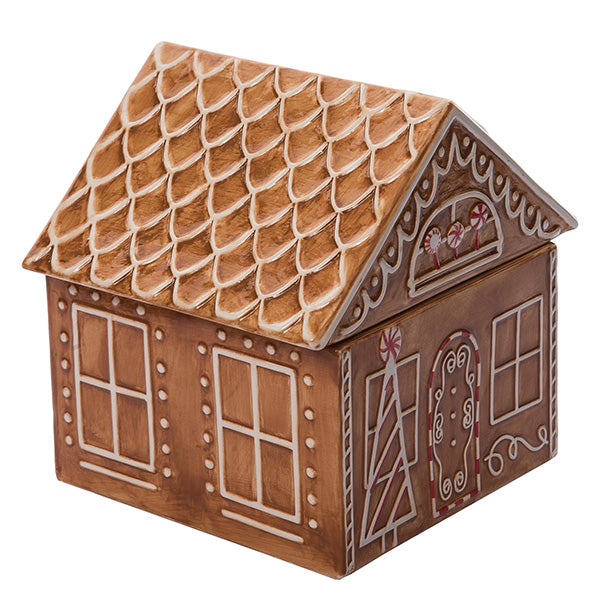 Gingerbread House Cookie Jar: 8.5"W x 7.5"D x 8.5"H