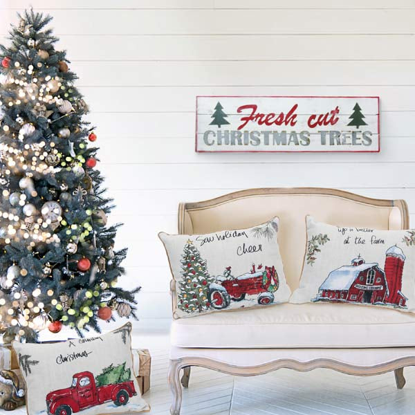 These decorative throw pillows are sure to put you in the Christmas spirit! They are classic traditional and have that vintage feel that we all know and love! OH and did you notice you can choose between the vintage tractor the old barn or the pickup truck!!! They would look AHHMAZING on your couch entryway bench the guest room bed or even in your office! We know you will love these beauties as much as we do! You can't say no to these beautifully designed holiday pillows.