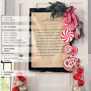 Red and White Spiral Oversized Outdoor Christmas Ornaments, Set of Eight