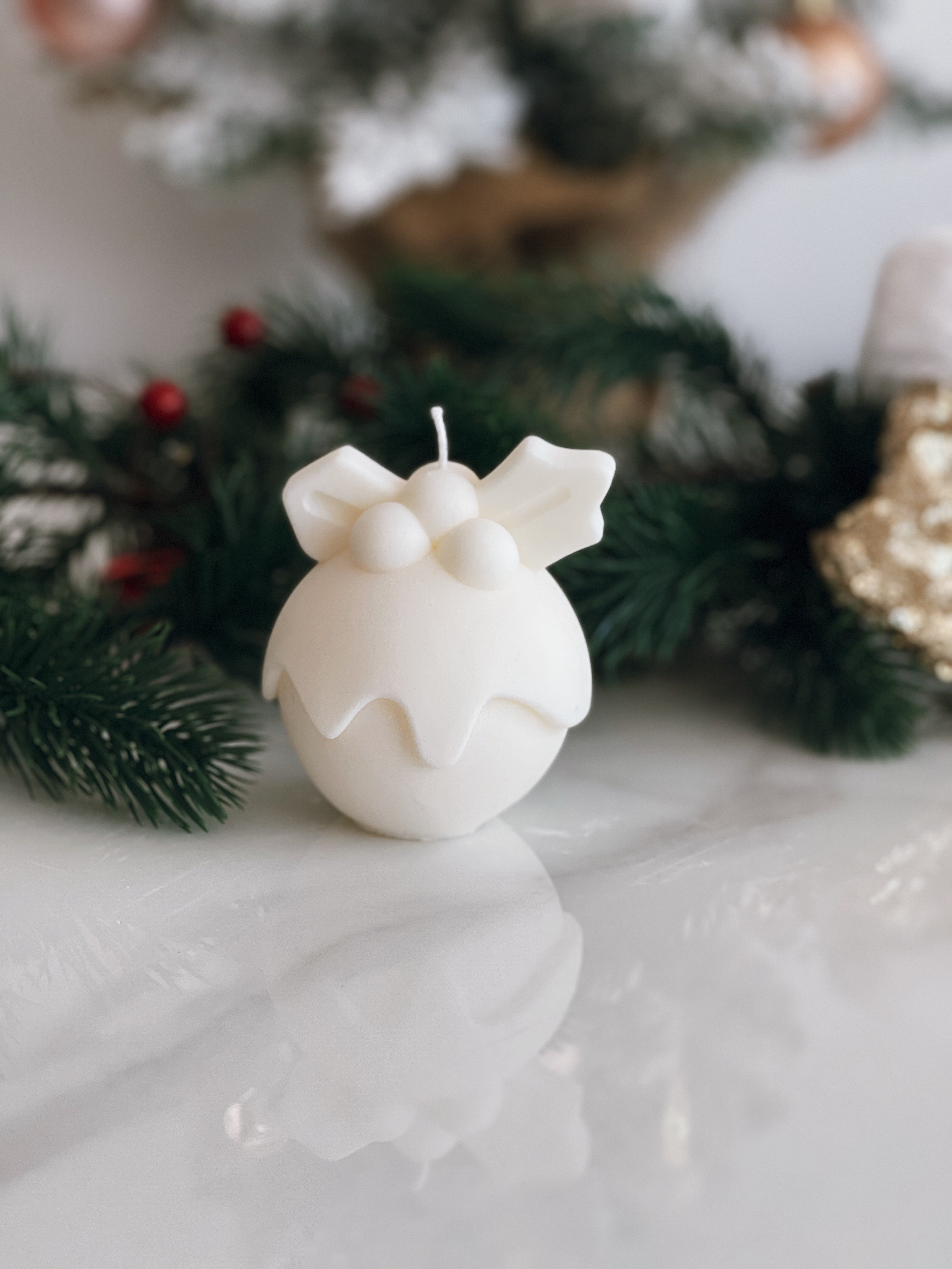 Brighten up your holiday with this too-cute-to-resist Christmas Pudding candle! The festive design and warm, cozy aroma will have you feeling merry and bright in no time! Spread the holiday cheer with this adorable addition to your decorations.
