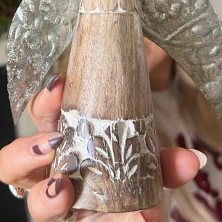 - Timeless design: Crafted from wood with a natural finish, each angel features intricate pressed tin wings for added detail.