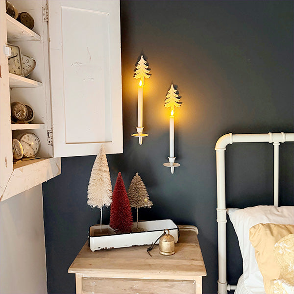 Meet the White Metal Christmas Tree Wall Sconces, where timeless design meets modern ease. Each one is crafted from solid metal craftsmanship with an elegant distressed white finish that radiates farmhouse charm. The Christmas tree cutout isn’t just cute — when lit, it casts delicate, dancing shadows across your walls like twinkling snowflakes.