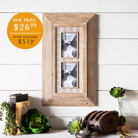How could you say no to this double photo frame that has such charm and elegance?! Crafted from beautifully distressed wood, this GORGEOUS wall-mounted double photo frame will showcase your photos in the most stunning way!! Hang it in your entryway living room bedroom office den; with soooo much character it can literally go ANYWHERE!! Don’t you just LOVE it??? Of course you do!!!!