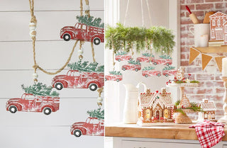 Hang this garland along the mantel or as part of a centerpiece on your dining room for a fun and festive look. You could even add some greenery atop and create a beautiful and unique hanging décor. This vintage-style truck garland is a great seasonal piece for inside or out.
