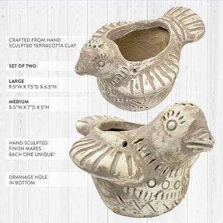 Transform your space with the Handmade Sculpted Bird Clay Planters, Set of 2. Order now and bring the artful allure of nature into your home with these uniquely crafted planters!