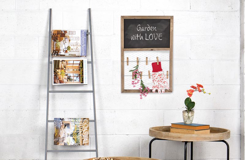 First off how great would this be in your office space?! Display your favorite family pictures and to-do lists using the clothespins while using the chalkboard to write down important dates! We adore the idea of hanging this piece in the laundry room and pinning up your socks that are waiting on missing partners... how clever?! You can even show off your creativity by drawing seasonal chalk art on the board and hanging seasonal seed packages against the rustic chicken wire.