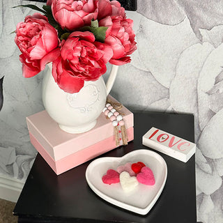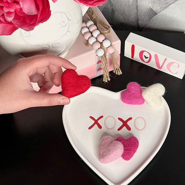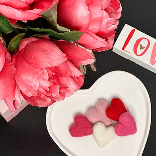 The perfect accent for your dough bowls! This set of FIVE wool hearts will give a pop of color and a TON of charm to your space this Valentine's Day... and beyond!