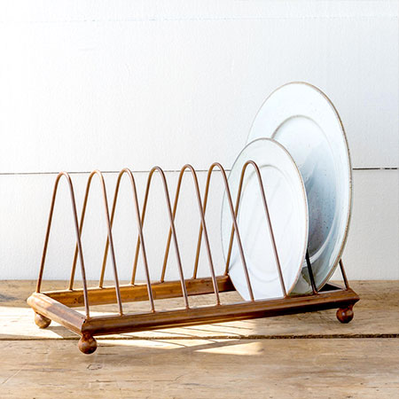Perfect for drying your dishes or storing your serving platters this copper dish rack is great to maximize space while adding vintage-inspired charm to your space. Set this rustic copper dish rack on your countertop and show off those dishes while bringing character and style to your home’s decor.