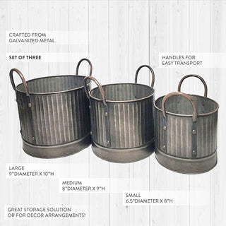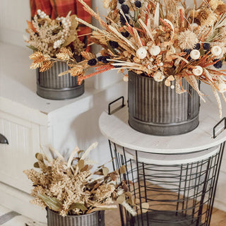 Add some real or faux plants inside these Corrugated Old Metal Pails and place these beauties on the steps of your front or back porch! Place a few around the house with your favorite herbs or flowers! Grab multiple of these to use as a stylish storage solution for all of your organization needs in your kitchen pantry, closet, or toy room! Fill these with a variety of fun treats or drinks to place along your tablescape for a party! Use them in your craft room to sort your markers pens and pencils OR place one on your desk to collect ALL your spare change to save up for that big vacation you've been planning for years!