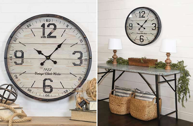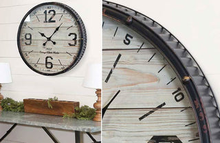 Woo-Hoo! We are SOOO excited about today's HUGE deal we don't know where to start! The first time we laid eyes on this beauty we just knew that this was something we HAD to bring as a steal to our wonderful customers! Lately everyone seems to be wanting clocks! Not only are they functional but the printed wooden plank and distressed metal combination on this particular clock is striking! And look at the THICKNESS and corrugation detail on the sides! HOW COOL?! So don't waste ANY time! If YOU KNOW you need this piece add it to your cart quickly before they're all gone!