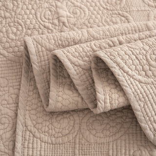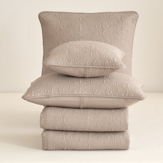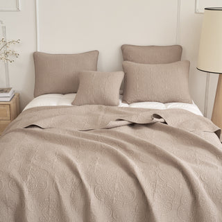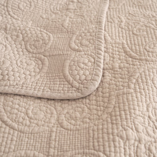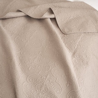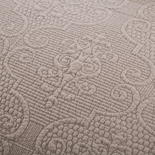 Accented with multiple soft to touch textured floral patterns all over the bedspread in solid tan beige shade in this classical yet