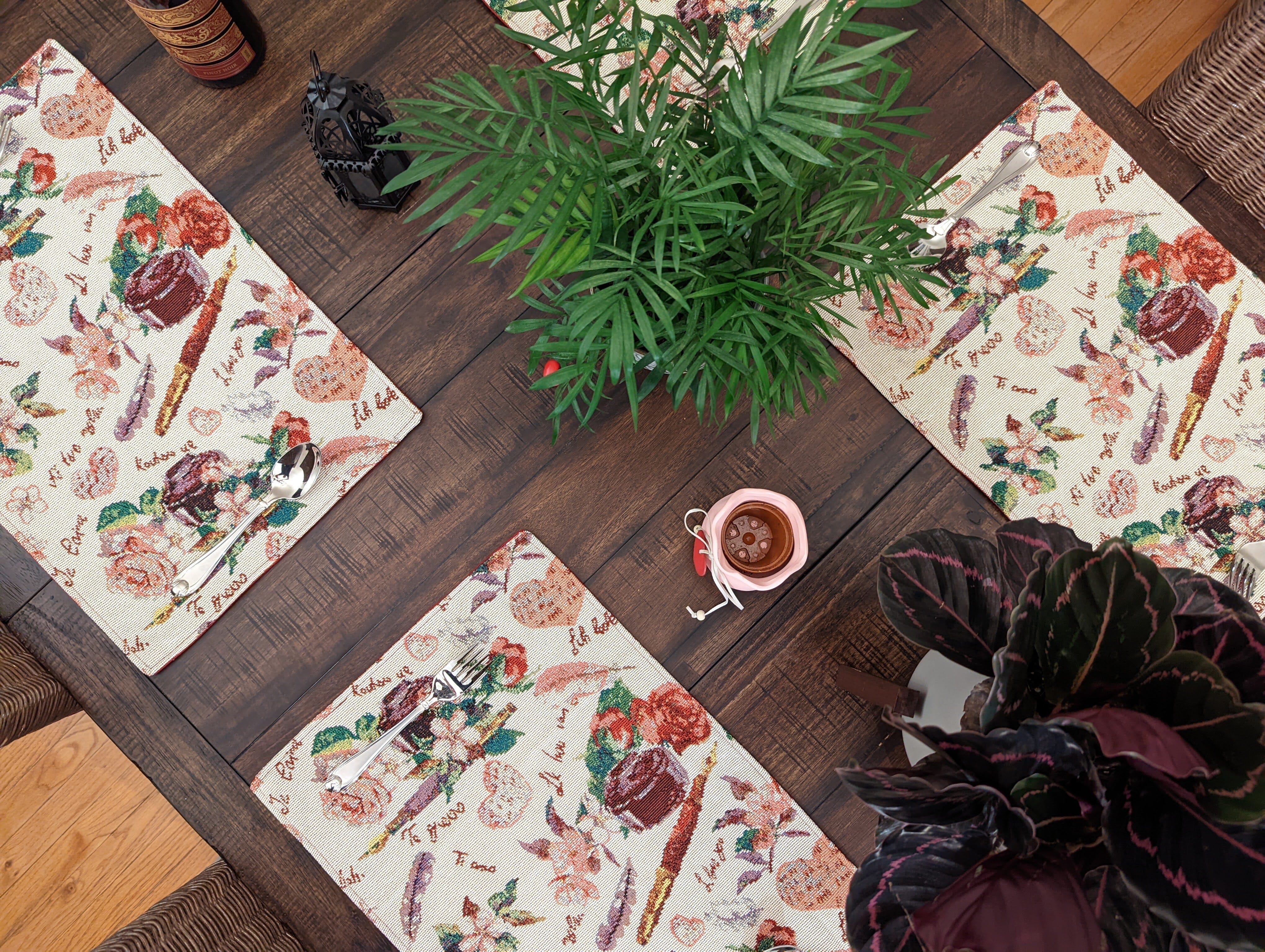 Decorate your dining table with our elegant and blooming sweet love notes design on our one of a kind tapestry placemats.