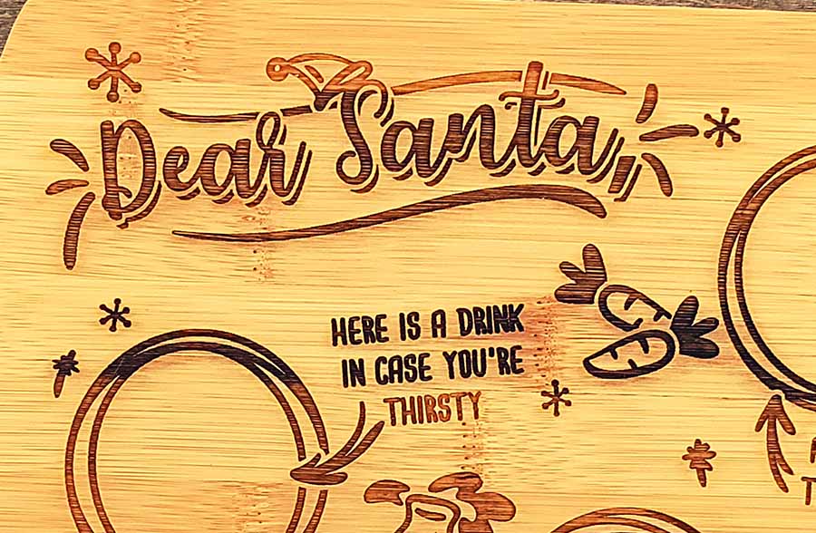 Talk about a UNIQUE piece! This Dear Santa Laser Engraved Bread Board has us swooning! Check out all of the cool things that are engraved in this beautiful bamboo board... This is the PERFECT thing to lay out for Santa this Christmas Eve!