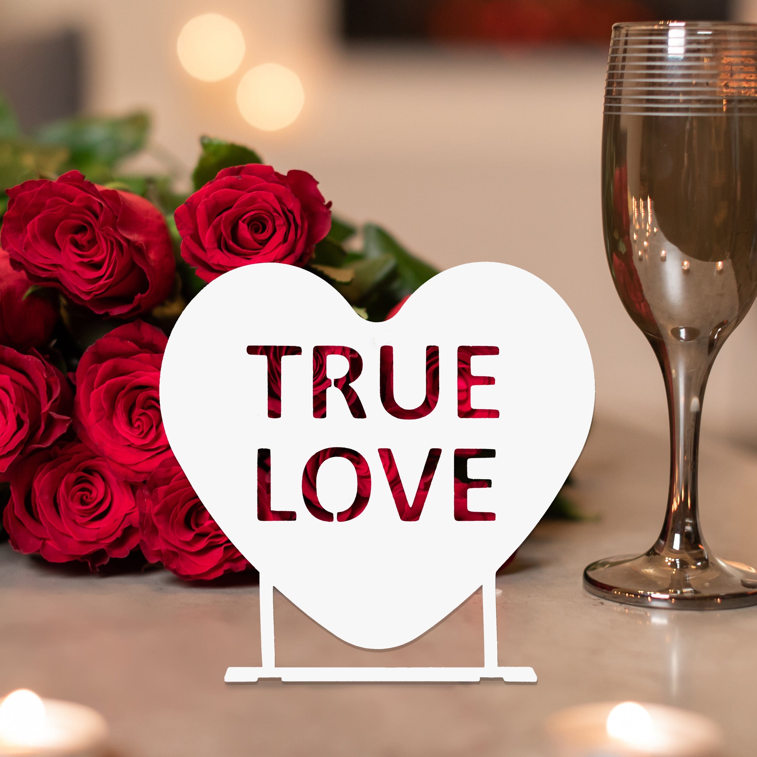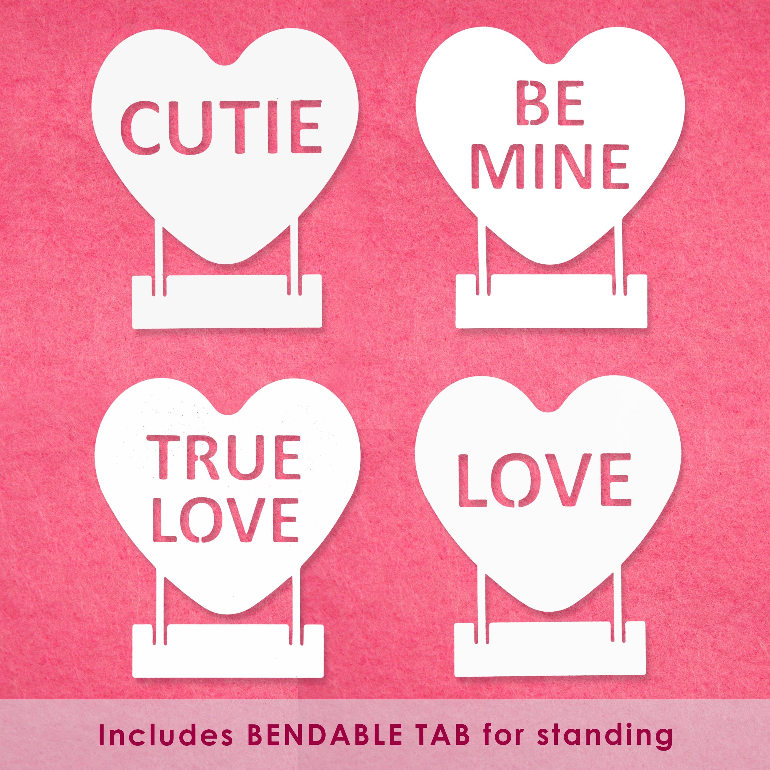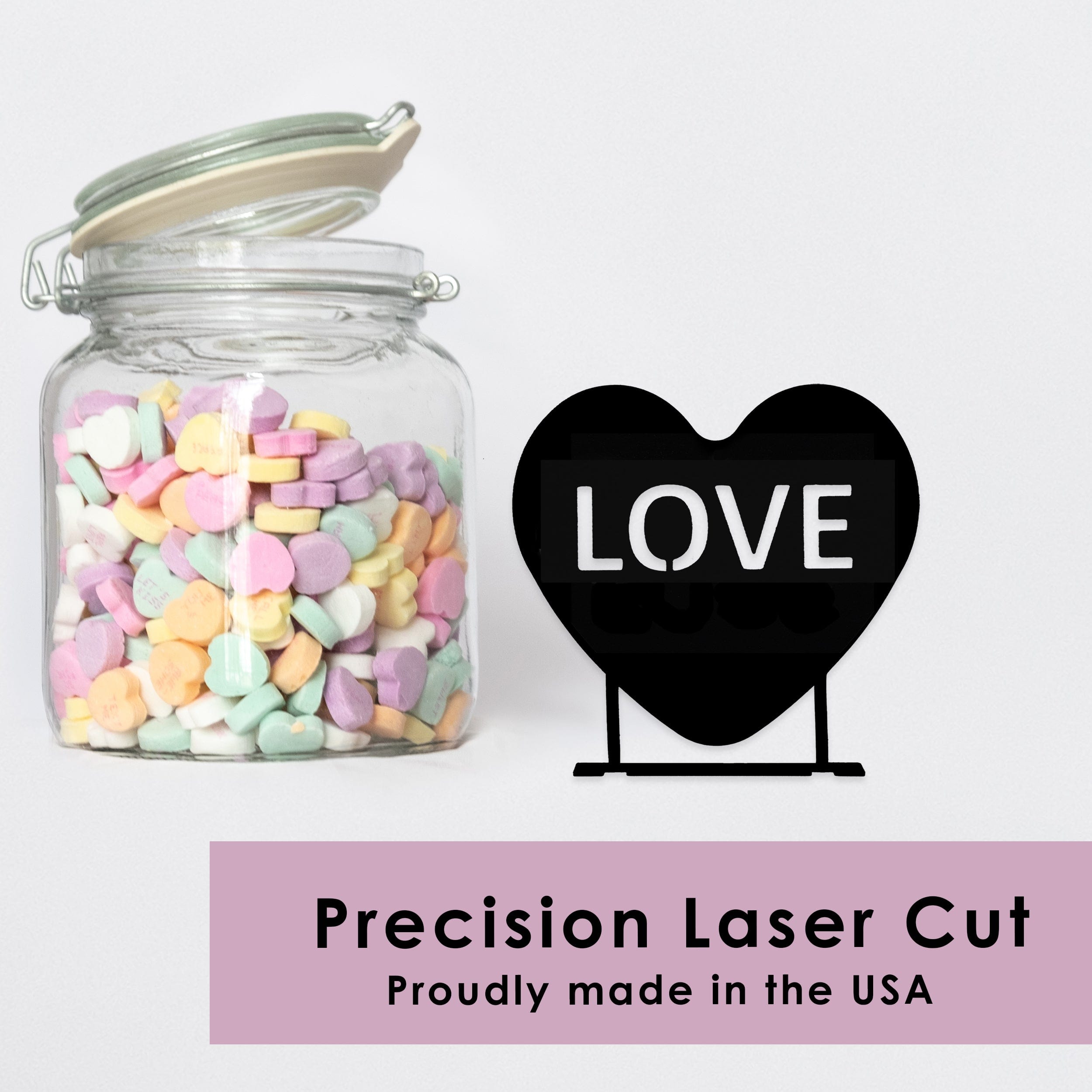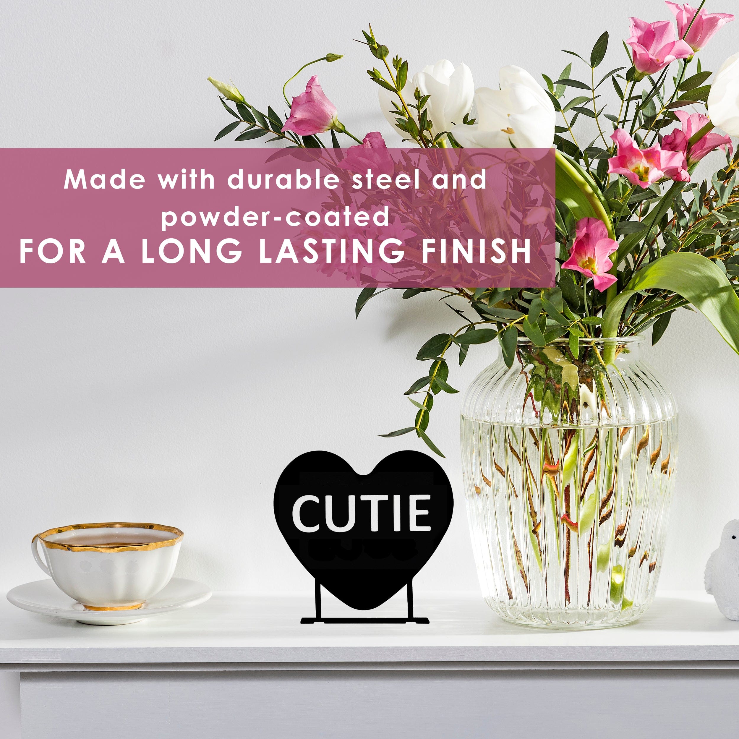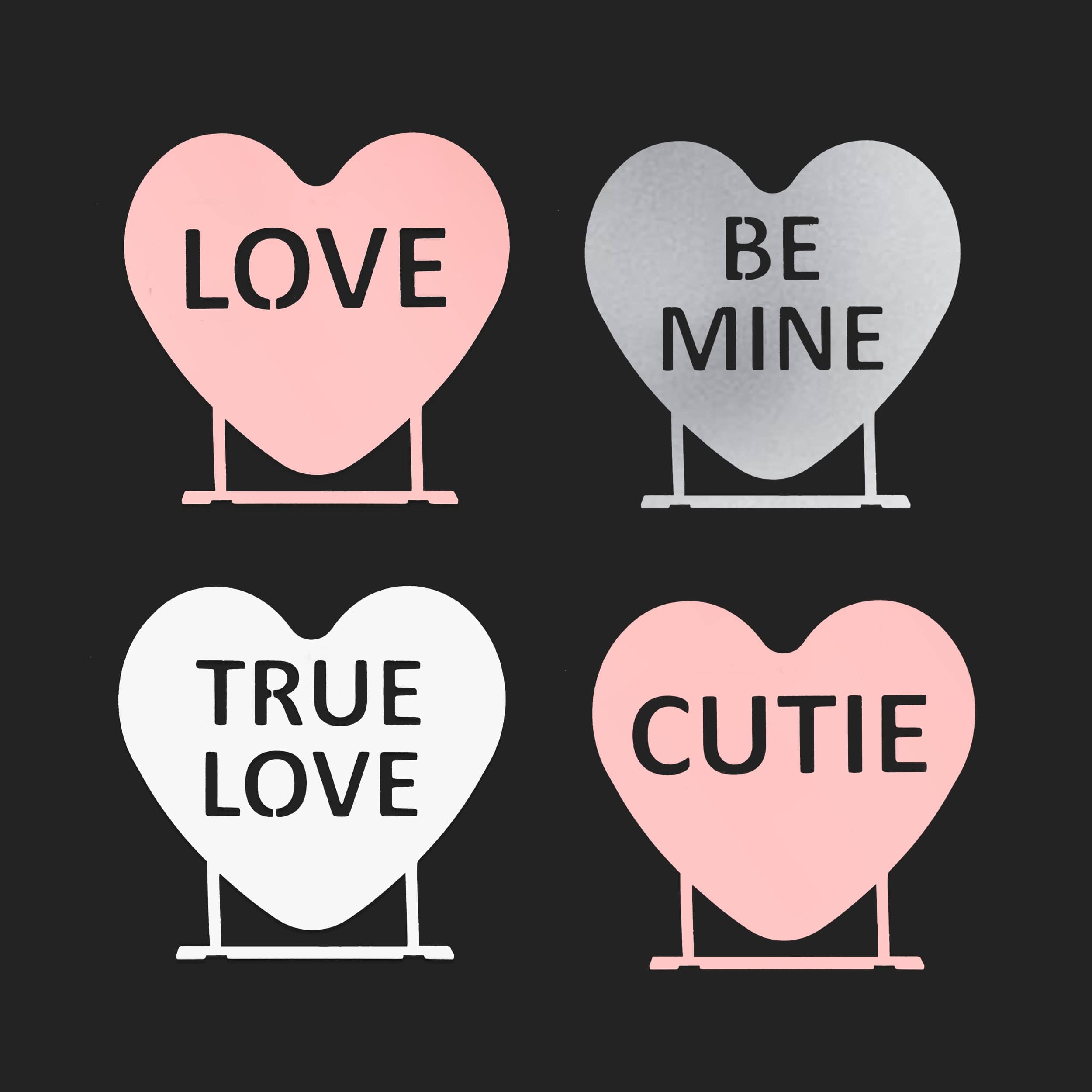 Add a touch of charm to your Valentine’s Day decor with these steel-crafted Candy Conversation Hearts! Each heart measures 4 inches tall by 4 inches wide and is laser-cut for precision. Choose from four sweet styles: Be Mine, Cutie, Love, or True Love.