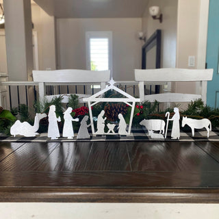 Each piece in our nativity set indoor collection is thoughtfully designed with a bendable tab, allowing them to stand upright, creating a nativity wall scene, or adorning your mantel or any corner of your home. The sturdy metal construction ensures durability while adding a dash of farmhouse charm to your Christmas decor. Let these figures stand tall on your mantle, or use them as unique nativity scene figurines to create a memorable Christmas display.