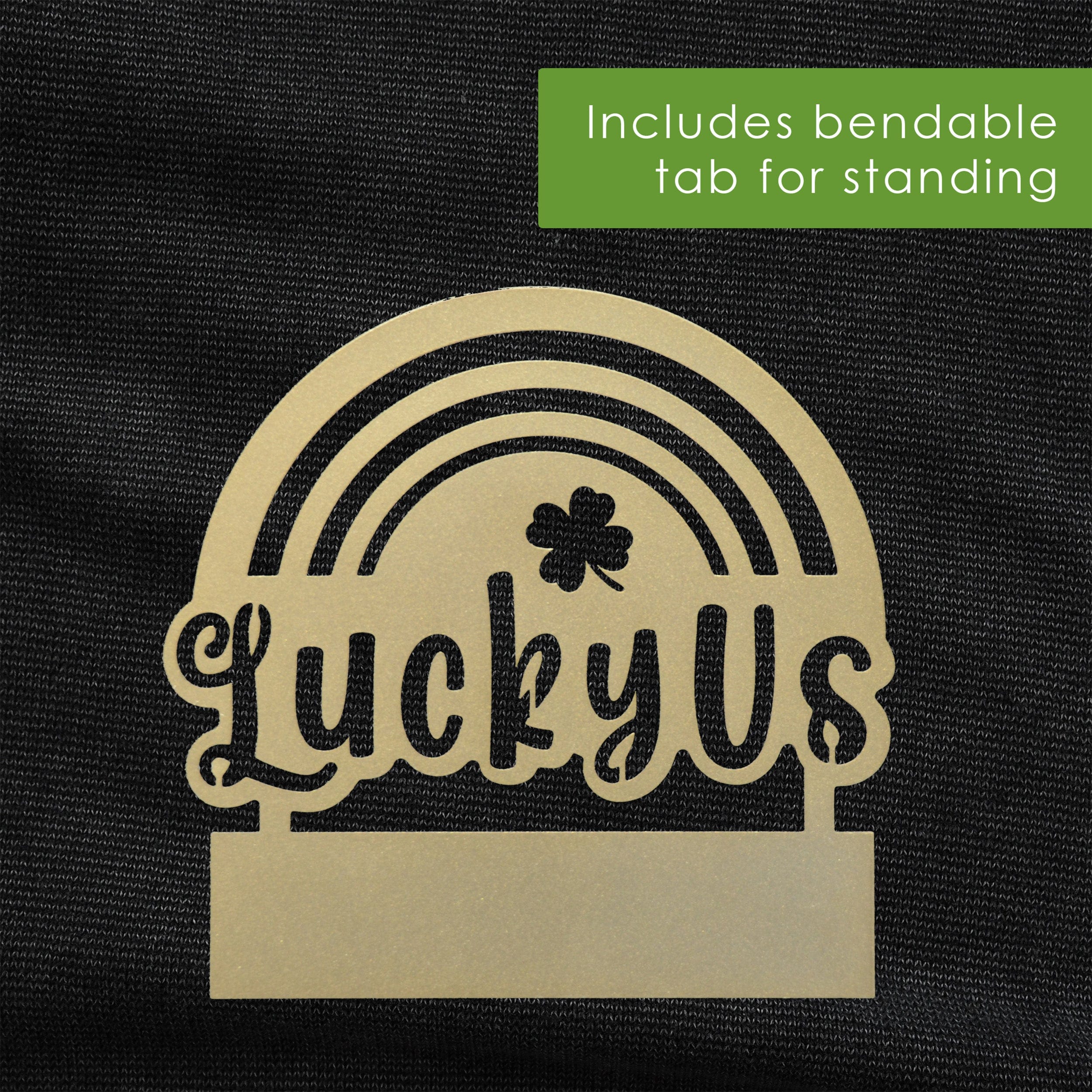 Add a festive touch to your home with the Lucky Us Rainbow Clover Tabletop Sign! This charming St. Patrick’s Day decoration is laser-cut from durable steel and proudly made in the USA. Featuring a beautifully cut rainbow design with a lucky clover and the words Lucky Us, this piece brings a bit of Irish charm and good fortune to any space.