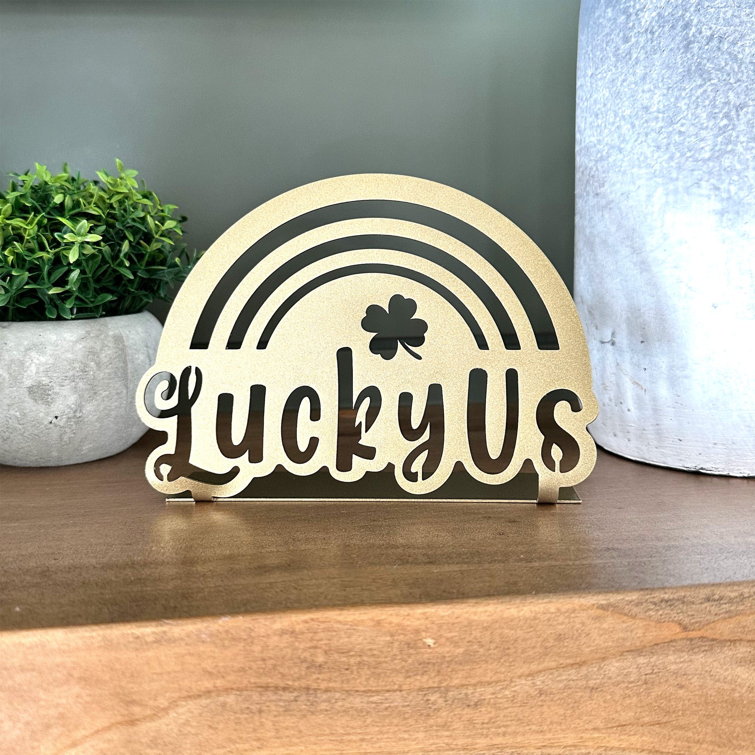 Celebrate the luck of the Irish with this stylish and modern rainbow and clover metal sign—the perfect way to say Lucky Us!