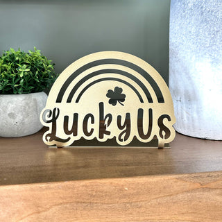 Lucky Us Rainbow Clover Tabletop Sign