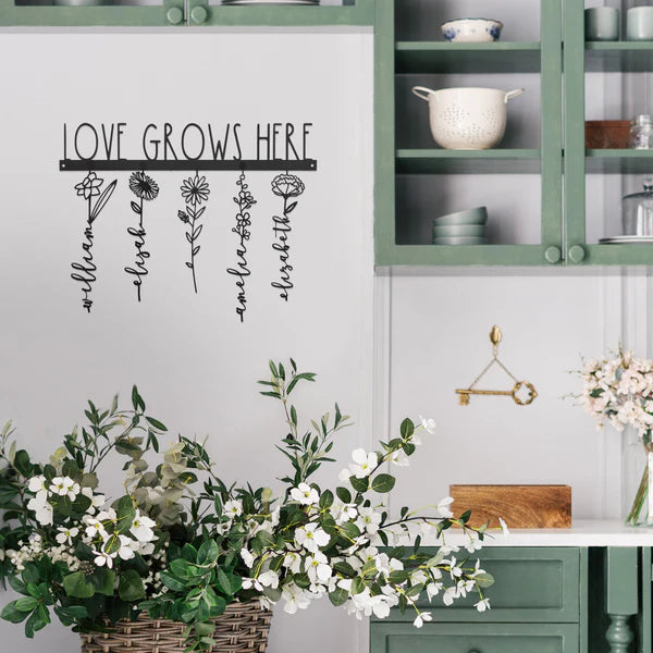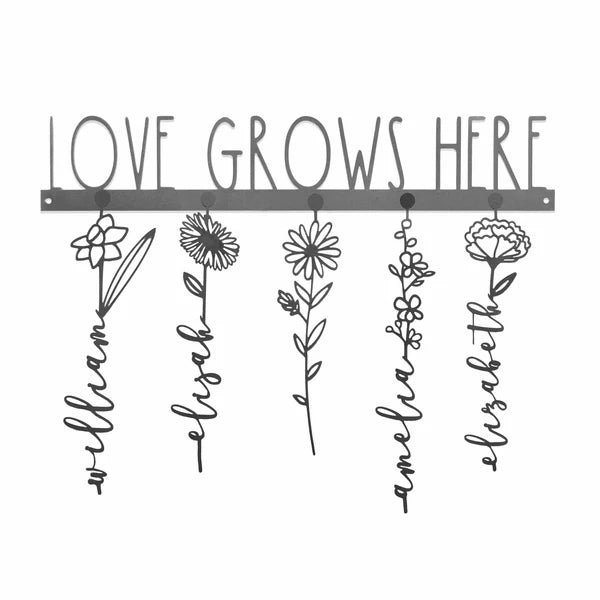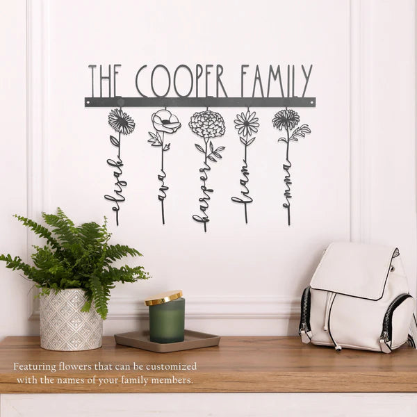 Customizable: The hanger for the flowers can be customized with up to 21 characters, allowing you to add a special message or your family's last name, making this personalized family name sign a perfect addition to your mom's home decor. Flower placement can be adjusted as your family grows with removable magnetic flowers. Choose from 12 varieties of flowers either by picking your favorites or by selecting the corresponding birth month flower for each individual.