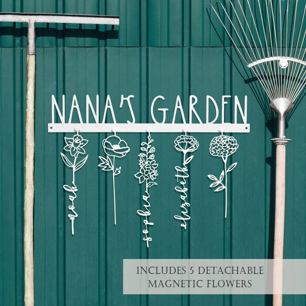 Makes for a Great Gift: Combining elements of personalized wall decor for family, mother signs for home decor, and gardening Mother's Day gifts, this metal sign is a versatile and thoughtful present for moms, grandmas, or other special women in your life. Each set includes one personalized hanger, 5 customizable flowers, and 5 magnets.