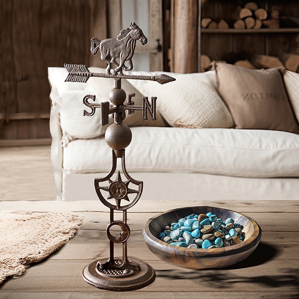 Rustic Charm: Embrace timeless elegance with a touch of rustic charm. This weathervane enhances the visual appeal of your garden, covered patio, or tabletop with its classic allure.