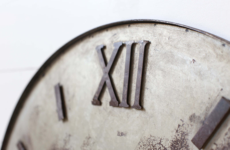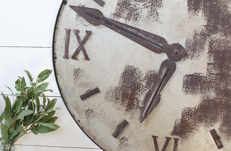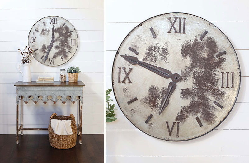 This vintage-inspired 28" Diameter clock (YUP really LARGE and dramatic) Metal Industrial Wall Clock is beyond pretty! This clock brings to mind old clocks found throughout Flea Markets or at an Antique Show! It's distressed finish and roman numeral numbers gives this clock SOO much texture and unique details. So today is your chance to enjoy this farmhouse vintage beauty at our CRAZY good price! And as always no matter what the size is shipping is ALWAYS $5!