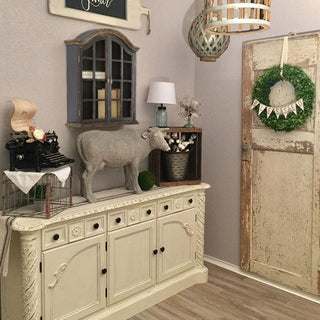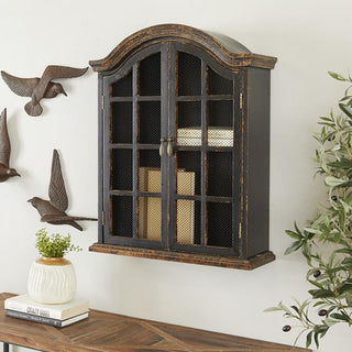 If you are like us (vintage connoisseurs) you will truly appreciate this distressed piece! We are absolutely in LOVE with the large size, hand-distressed, black paint finish, architectural design, the shape of the windows, and of course the vintage-inspired wire screen. These seemingly old cabinets are classic beauties that will look stunning lined with photos, old books, flowers, plants, or even all of the above! Or try mounting this wall shelf in your bathroom or kitchen to create more space. They are the perfect spot for rolled hand towels or other bathroom and kitchen essentials.