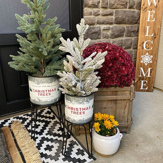 Overflowing with holiday charm, these Distressed Christmas Bin Planter Stands are a functional way to incorporate the spirit of the season. It's the distressed details that truly inspire and spark your home with a unique design. The traditional style, galvanized metal and unqiue design all come together to bring your space to life.