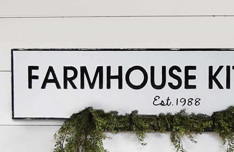 -The sign reads: “Farmhouse Kitchen Est. 1988”